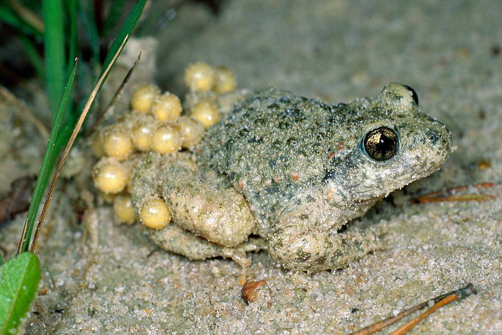 Geburtshelferkröte, Männchen mit Laichschnüren - Alytes obstetricans