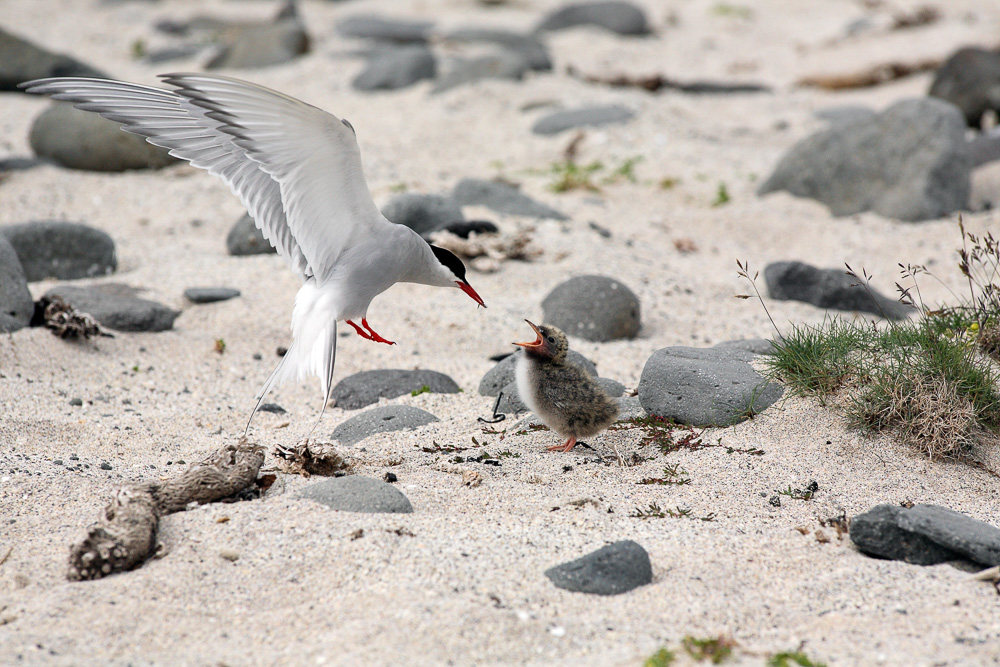 Küstenseeschwalbe füttert Junges – Sterna paradisaea (2)